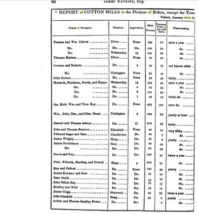 (Table in: Factories Inquiry Commission, Supplementary Report Part 1, 1833, p. 280)