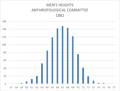 - The survey of the Anthropological Committee, giving an average height of 67.4 inches in 1882 and a few years before.