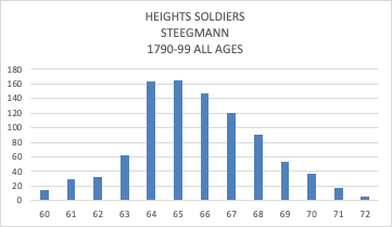 - Of the Steegmann soldiers, those who were recruited in 1790-1799, that is, when there was a large volume of recruitment, the average height was 65.9 ins.