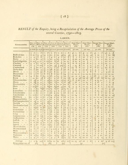 1790 Board of Agriculture: Communications to the …, on Subjects relative to the Husbandry and Internal Improvement of the Country, London, 1806, Vol V., Part I, p. 18; Result of the Enquiry, being a Recapitulation of the Average Prices of the several Counties, 1790-1803: Labour