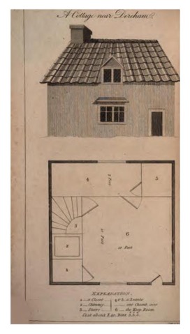 (Board of Agriculture / Charles Vancouver, General View of the Agriculture of the County of Devon, 1808; plate facing p. 96, View of the Bridestowe Cottages)