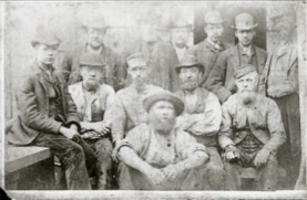 James Cox, centre on the front row, surrounded by some of the men he worked with. The photograph was taken circa 1848. James Cox came to Manchester from Ireland in 1846 during the famine years. He first lived near Oxford Road Station, Mary Street, an area known as “Little Ireland”. He also worked on the Manchester Ship Canal in the later years of the 19th century. Mr. Cox, although he lived in the worst slum in Manchester, “Little Ireland”, does not appear to be poor or to have suffered hunger!
