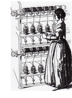 Silk throwing was originally a hand process relying on a turning a wheel (the gate) that twisted four threads while a helper who would be a child, ran the length of a shade, hooked the threads on stationary pins (the cross) and ran back to start the process again. The shade would be between 23 and 32 m long. Supposing the master to make twelve rolls a day, the boy necessarily runs fourteen miles, and this is barefooted.
