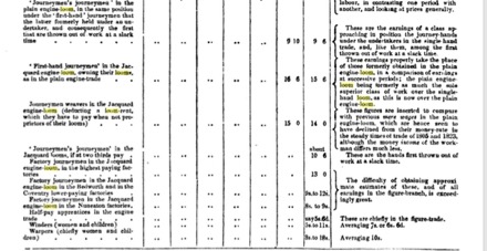 In Lancashire in the period 1839-1859, the wages of the silk workers in general increased by 10 %, due to the increase in volume of work in industry in general, and thus the need of the owners to retain their workers. Only in those branches where the activity was reduced from “skilled labour” to “unskilled labour” due to the use of machines, such as calico printing, dyeing and bleaching, and printing, was there a reduction.