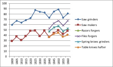 Following we have detailed information from Dr. Thackrah, who wrote the first book on occupational medicine, “The Effects of Arts, Trades, and Professions, and of Civic States, and Habits of Living on Health and Longevity”, in 1832. The book includes observations and measurements on about 100 occupations.